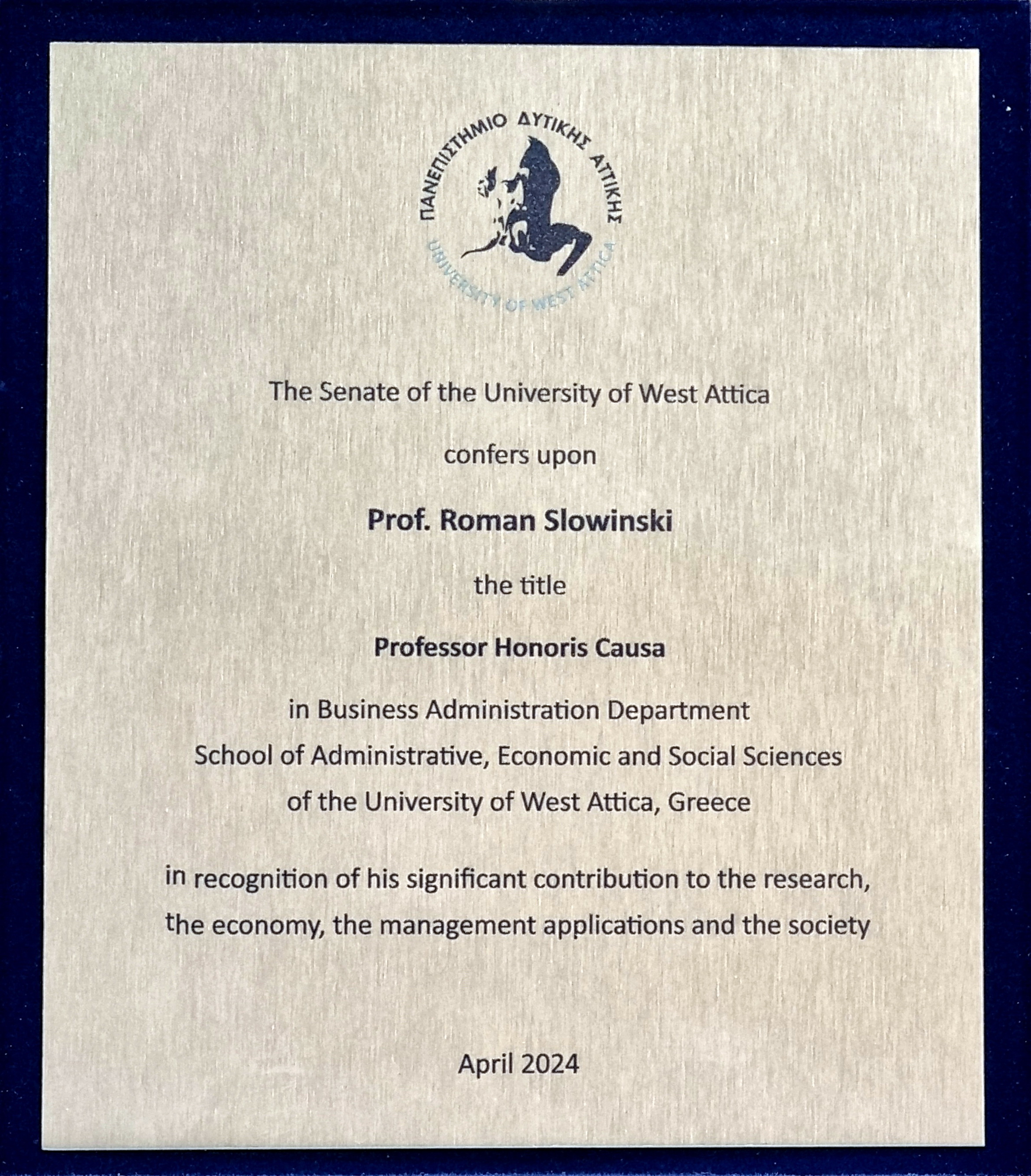 Doctorate Honoris Causa University of West Attica 2024
